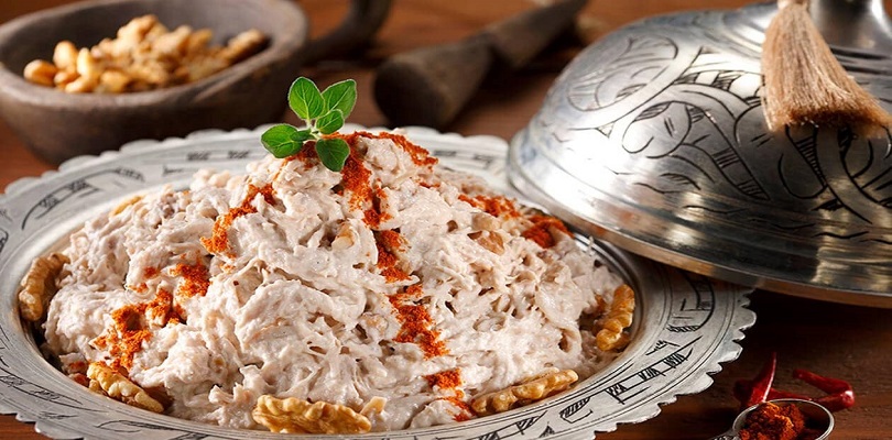 - Ekmekli cevize biraz tavuk suyu karıştırılıp ezilmiş yoğurt kıvamına getirilir.